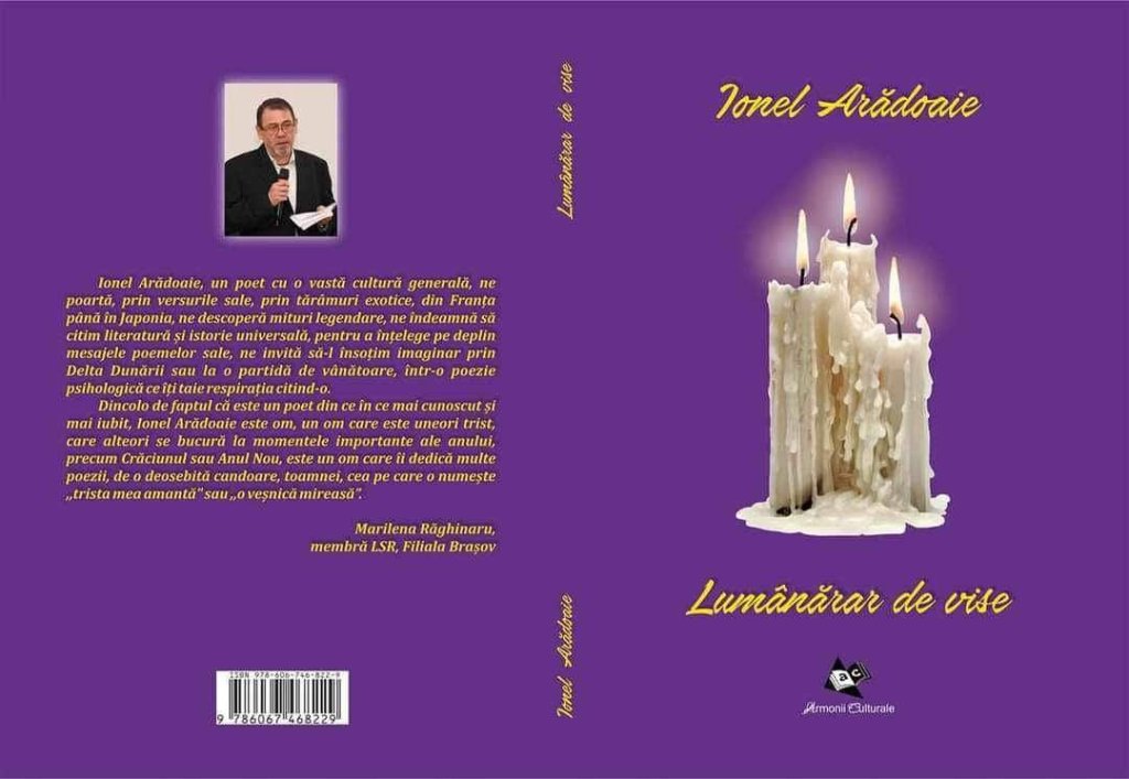 Nu știu dacă momentele importante, care ne schimbă uneori destinul sunt rodul purei coincidențe sau Cineva, acolo, Sus,decide, fără voia noastră, ceea ce trebuie să se întâmple. Eu cred, cu toată convingerea, că întâlnirea mea, la început pe tărâmul poeziei, cu Ionel Arădoaie nu a fost doar rodul hazardului. Printr-o legătură, dictată parcă de o forță superioară nouă, l-am cunoscut pe omul și poetul Ionel Arădoaie și mi-am pus amprenta, prin culegerea de texte, prin corectura lor, asupra tuturor cărților pe care Ionel le-a publicat până acum. I-am scris recenzia cărții cu care a debutat, ,,Zbor spre steaua singurătății”, volum apărut abia în 2018, după ce, timp de 30 de ani, a compus încontinuu poezie, fără a fi publicat însă până atunci. Cred că acum, după ce deja i-au apărut patru volume de autor și alte două volume în colaborare cu mine, tot Divinitatea a hotărât ca eu să mă ocup din nou de culegere de text, corectură și să-i scriu recenzia acestui nou volum de poezii, care este posibil să fie ultima noastră colaborare. Am fost fascinată (și încă sunt!) încă de la început de poetul Ionel Arădoaie și am fost îndrăgostită de omul Ionel Arădoaie. Astăzi voi încerca, fără implicare sentimentală, să vorbesc numai despre poetul Ionel Arădoaie, despre acest nou volum de versuri. Sunt mândră de traseul său literar, de premiile pe care le-a câștigat în poezie (printre care și un trofeu!), de revistele și antologiile literare în care a publicat. Sunt mândră de faptul că este iubit de către admiratorii lui, că este un nume cunoscut în literatura română contemporană, că poezia lui este citită și distribuită de mulți iubitori de poezie de calitate, sunt mândră că am crezut în el de la început! Ionel Arădoaie își exprimă, din nou, durerile, suferința, revolta, iubirea, bucuria de a scrie în volumul intitulat ,,Lumânărar de vise”, un volum mult mai acid, mult mai îndrăzneț în limbaj și sentimente, comparativ cu toate celelalte cărți ale sale. Volumul este împărțit în trei capitole, bine delimitate, intitulate sugestiv: ,,Cine sunt eu?”, ,,Alchimia Iubirii” și ,,Antivirus”, fiecare dintre ele exprimând alte trăiri ale eului său liric. Cartea debutează cu capitolul ”Cine sunt eu?”, capitol care poetul a ales să-l deschidă cu poezia care dă titlul acestui incitant volum de versuri, poezie intitulată ,,Lumânărar de vise”. Poate vă întrebați cine este acest ,,lumânărar de vise”. Este chiar El, Poetul sărac al acestor vremuri, sărac din cauză că poezia, pentru care el își ”chinuie creierii și nervii”, se citește mai mult pe rețelele de socializare, oamenii nemaifiind dispuși să dea banii pe cărți. Cu toate acestea, Ionel știe că s-a născut ”c-un scop anume”, acela de a crea versul de calitate și a se dărui cititorilor săi prin cuvântul scris. Pentru a ne face să-i înțelegem mai bine mesajul, poetul ne invită, în cea de-a doua poezie, în universul său, Cartea sa de poezie, unde ne cere să pășim ”încet și cu sfială„, urmând ca, apoi să se întrebe, și să ne întrebe, într-o, superbă poezie: ”Cine sunt eu ?” Tot el ne dă răspunsul, spunând, prin splendide metafore, că este, ,,un șaman al viselor deșarte„, un ,,aed al unei muzici moarte”, ,,un plânset de caval„, un ,,vânzător de colivii” ,,ultimul plugar”, ,,o umbră sau un zvon„. Dar Poetul, omul care se dăruiește pe sine prin divina poezie, este un om trist adesea fără bani de pâine, de țigări, sau de salam, adesea ,,depresiv-compulsiv”, un om care suferă pentru durerea celorlalți, un om care se mistuie pentru patimile pământului, care ne este și mamă și casă, un om care constată, cu imensă tristețe că: ,,Dumnezeu nu ne mai iubește”. Pentru că poetului îi este dat să cunoască, real sau virtual și alți frați de condei, este normal ca el să plângă atunci când oameni dragi, dăruiți și ei scrisului, au plecat, adesea, mult prea devreme, în lumea îngerilor. Și este firesc să le dăruiască, spre nemurire, stihurile sale. În poemul ,,Regviem-Ana Podaru” poetul parcă presimte morțile care vor urma în lumea literară atunci când se întreabă: ,,Cine urmează, cine e la rând?” Și a urmat Anca-Maria David, o poetă gingașă, cu chip și glas de înger, o bună prietenă de-a mea și a lui Ionel, răpusă mult prea de tânără de o moarte extrem de nedreaptă. Suferința morții ei și-a exprimat-o poetul scriind: ,,Cuvintele-i blajine, din versu-i, îmi răsună/ Și pentru fiecare avea o vorbă bună”, întrebându-l apoi pe Dumnezeu dacă vrea ca ,,Raiul să răsune de poeme”. Au urmat și Nicolae Dabija, și Valer Popean, și Constantin Triță, la moartea căruia Ionel constată că ,,Lumea poeților a devenit săracă”. Ionel Arădoaie, un poet cu o vastă cultură generală, ne poartă, prin versurile sale, prin tărâmuri exotice, din Franța până în Japonia, ne descoperă mituri legendare, ne îndeamnă să citim literatură și istorie universală, pentru a înțelege pe deplin mesajele poemelor sale, ne invită să-l însoțim imaginar prin Delta Dunării sau la o partidă de vânătoare, într-o poezie psihologică ce îți taie respirația citind-o. Dincolo de faptul că este un poet din ce în ce mai cunoscut și mai iubit, Ionel Arădoaie este om, care de multe ori se întristează dar care știe și să se bucure la momentele importante ale anului, precum Crăciunul sau Anul Nou, este un om care îi dedică multe poezii, de o deosebită candoare, toamnei, cea pe care o numește ,,trista mea amantă” sau ,,o veșnică mireasă”. Firesc, Poetul Ionel Arădoaie are idoli în Sfânta Poezie, iar aceștia sunt marii Poeți care i-au marcat existența, mentorii săi, zeii sufletului său, ai minții sale creatoare de frumos și veșnicie, sunt nemuritorii